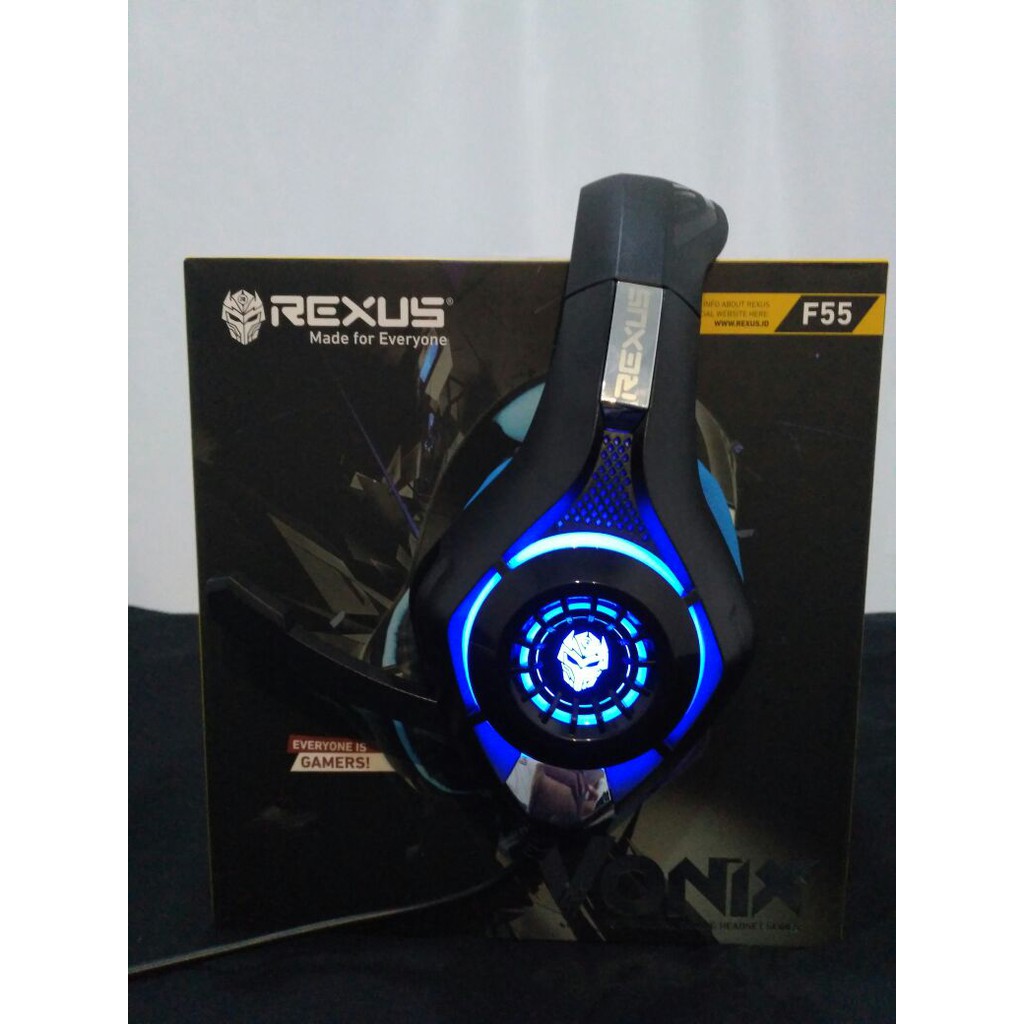 Rexus f55 vonix headset gaming with mic led. Rexus vonix f55 headset gaming with led merupakan headset gaming f55 yang di desain untuk para penggemar game game pada pc. Rexus made for everyone. With sensitivity of 105db it produces clear sound quality compared with other standard gaming headset.