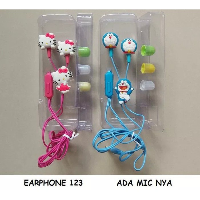 Handsfree karakter mic earphone headset handphone hp doraemon.