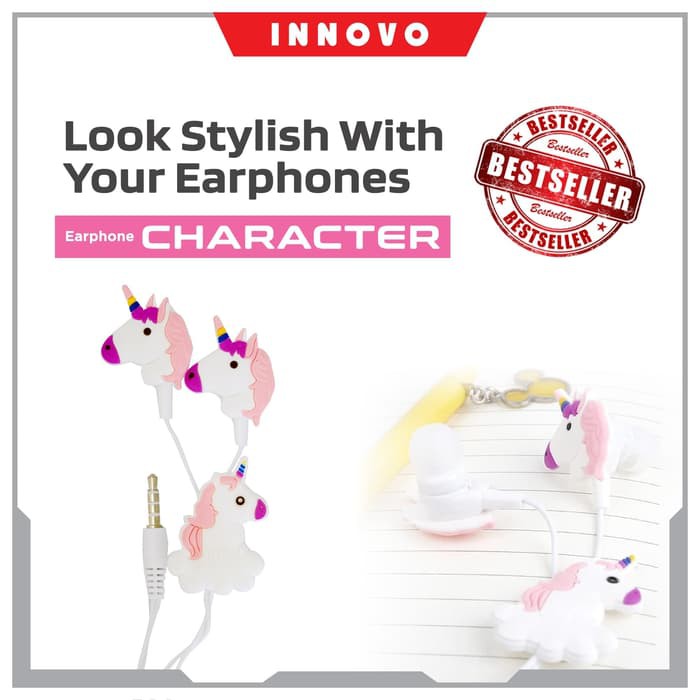 Galery headset karakter unicorn earphone headphone mic super bass innovo kfd9.
