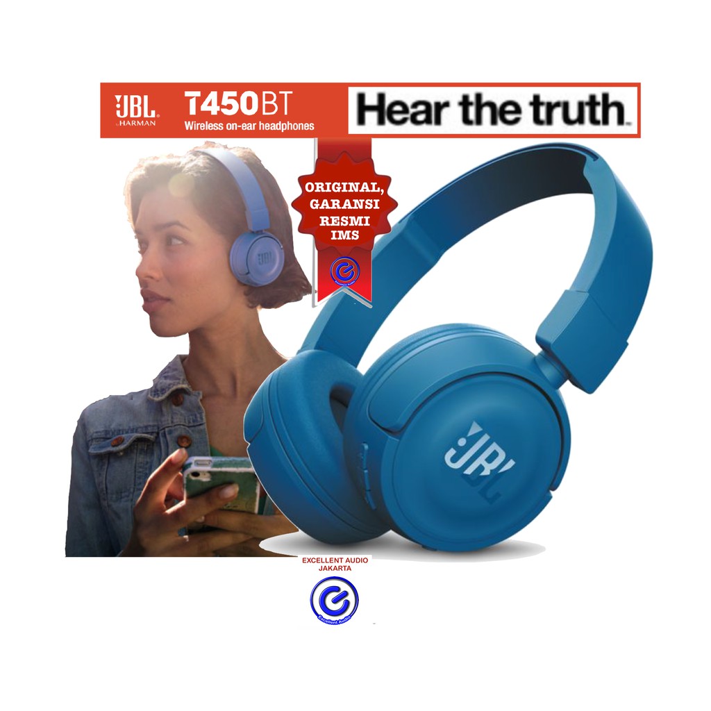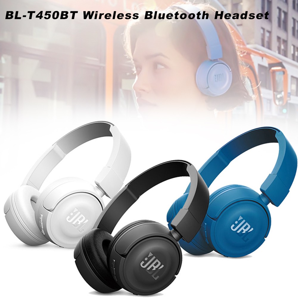 Jual headphone jbl bluetooth lengkap dan murah dari ribuan toko online se indonesia. Music and call controls microphone are placed on the earcup. Brand new jbl t450bt wireless bluetooth on ear headphones blue. They re flat folding lightweight comfortable and compact.