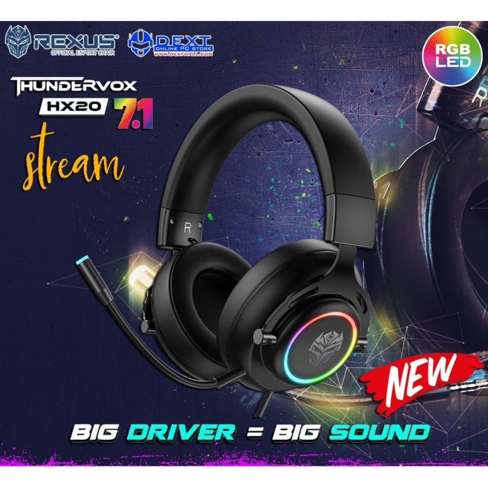 Rexus thundervox hx20 rgb usb 7 1 gaming. Completed with detailed sound characteristics mid level frequency range sensitive microphone and completed with sound imaging feature helps rexus gaming headset thundervox hx20 in creating an immersive gaming experience for you. Dengan karakteristik suara seperti itu indera pendengaran kita akan dipermudah saat menganalisa pergerakan musuh saat bermain game. Rexus merupakan merek lokal dari produk aksesoris gaming dan aksesoris mobile.
