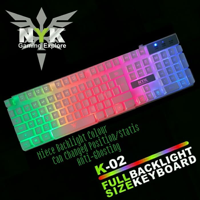 Jual best seller nyk k02 k 02 keyboard gaming rgb warna putih white dengan harga rp144 000 dari toko online sin yan shop jakarta barat. Detail produk nyk k 07. Kamu akan mendapat lampu led rgb yang enak dipandang dengan fitur spill resistant tak hanya itu keyboard ini juga dilapisi dengan alumunium yang tahan karat nice. Jual beli online aman dan nyaman hanya di tokopedia.